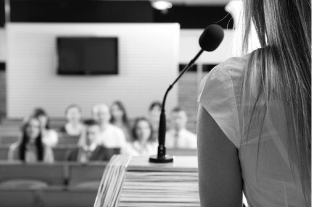 - Travail sur les bases corporelles de l’art oratoire : posture, respiration, regard, diction, « entrée en scène »